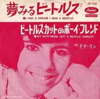 大瀧詠一のラジオ番組『ゴー・ゴー・ナイアガラ』のジングルに使用されていた事でも有名なカナダのティーン・ポップ・シンガー、ドナ・リンの1964年のビートルズ讃歌「夢みるビートルズ(I Had A Dream I Was A Beatle)」♪B面はフランス・ギャル「ギターとバンジョーと鐘(La cloche)」の原曲で大瀧詠一「FUN×4」の元ネタでもある「ビートルズ・カットのボーイ・フレンド(My Boyfriend Got A Beatle Haircut)」を収録した国内盤オンリーシングル。