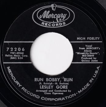 クインシー・ジョーンズに見出されデビューしたNYブルックリン出身のシンガーソングライター、レスリー・ゴーアの1963年の2ndアルバム『Lesley Gore Sings Of Mixed-Up Hearts』からのシングル。クインシー・ジョーンズのプロデュースによる60'sガールズ・ポップ・クラシック「Run Bobby, Run」♪A面は映画『ヘアスプレー』の挿入歌としても知られるフェミニスト賛歌「You Don't Own Me」を収録。