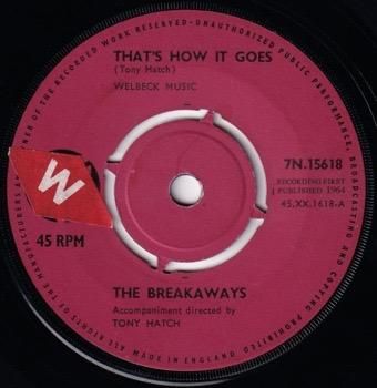 Vernons Girlsを母体とするイギリスのガールズ・トリオBreakawaysの"英国のバカラック"ことトニー・ハッチが手掛けた60'sガールズ・ポップの最高峰と名高いモンスターチューン「That's How It Goes」。B面のアイヴァー・レイモンドが手掛けた「He Doesn't Love Me」も超泣きメロの大名曲(日本ではこちらがA面としてリリースされました)♪