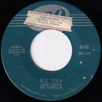 モータウンに先駆けて誕生し、シフォンズらのグループにも影響を与えたニュージャジーのガールズ・グループ、シュレルズの1961年のシングル。後にタミー・テレルもカヴァーしたR&Bナンバー「Big John」に、ちょっと乱暴でお転婆なコーラスが愛らしいショウビズな雰囲気も粋なR&Bナンバー「Twenty-One」を収録したカナダ盤ヴァイナル・プレス・オリジナル盤7インチ。