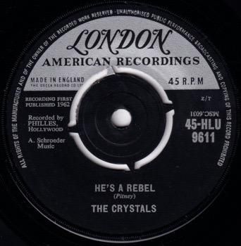 フィルスペクターが手掛けたニューヨーク出身のガールズ・グループ、クリスタルズのジーン・ピットニー作、ジャック・ニッチェ・アレンジによる1962年のシングル。クリスタルズ名義ですが歌っているのはダーレン・ラヴ&ザ・ブロッサムズで、ダーレン・ラヴの瑞々しくパワフルな歌声が鮮麗なソフトロック・ファンからも人気の高い名曲「He's A Rebel」の音圧最強UKオリジナル盤7インチ。