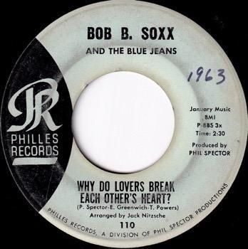 Blossomsのダーレン・ラヴとファニータ・ジェームス、そしてノーザン・ソウル・シーンでも愛されるR&Bシンガー、ボビー・シーンによるフィル・スペクターが手掛けたスタジオ・グループBob B. Soxx And The Blue Jeansの1963年のシングル。フィル・スペクター&エリー・グレニッチ作、ダーレン・ラヴのリード・ヴォーカルによるガールズ・ポップ・クラシック「Why Do Lovers Break Each Other's Heart?」♪そしてB面には大瀧詠一のラジオ番組『ゴー・ゴー・ナイアガラ』のテーマ曲としても有名な「Dr. Kaplan's Office」を収録したUKオリジナル盤7インチ。