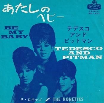 フィル・スペクターがプロデュースを手掛けたガールズ・グループ、ロネッツの1963年の代表曲でウォール・オブ・サウンド大名曲「あたしのベビー(Be My Baby)」。B面にはフィル・スペクターによるインスト・ジャズ・ナンバー「Tedesco And Pitman」を収録した1963年の日本盤7インチ。