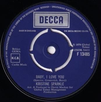 かなりマニアックな60'sスウィンギング・ロンドン時代に活躍したガール・シンガーChristine HolmesがKristine Sparkle名義でRonettes「Baby, I Love You」をカヴァーした1974年のシングル♪
