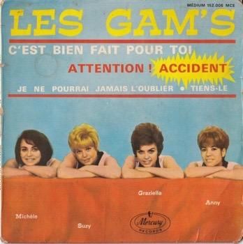 アメリカのヒット曲をフランス語でカヴァーし人気を博したフランスの4人組60'sガールズ・グループLes Gam'sの1963年のEP。Lesley Gore「Judy's Turn To Cry」、Beach Boys「Shut Down」、Exciters「Get Him」、特にRaindrops「The Kind Of Boy You Can't Forget」のフレンチ・カヴァー「Je Ne Pourrai Jamais L'oublier」が一押しです♪
