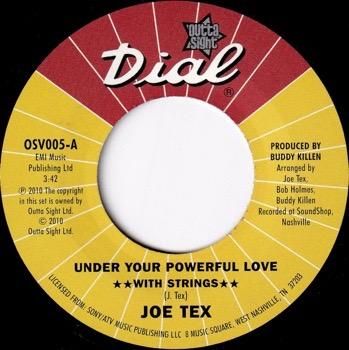 テキサス出身のR&B/サザンソウルシンガーJoe Texの1975にDialレーベルよりリリースされたシングルでWigan Casino Northern Soul Classics「Under Your Powerful Love」のストリング入VerにオリジナルVerを収録したUKのノーザン・ソウル・クラシック再発専科レーベル"Outta Sight"からのリイシュー盤7インチ。