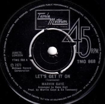モータウンレコードの大立者でソウル・ミュージックに革命を齎した偉大なるシンガー、マーヴィン・ゲイの1973年の名アルバムからのタイトル・トラック・シングル。エド・タウンゼントとの共作による全米No.1ヒットを獲得したナンバーで代表曲のひとつ「Let's Get It On」。映画『ハイ・フィデリティ』でジャック・ブラック演じるバリーがエンディングで歌っていた曲♪B面にはTemptationsの1967年のシングル曲「I Wish It Would Rain」のカヴァーを収録した1983年のリイシュー盤7インチ。