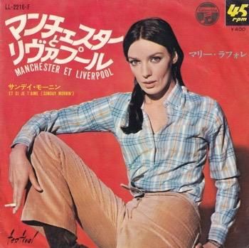 1960年にルネ・クレマン監督の映画『太陽がいっぱい』でデビューし、一躍アイドルとなったフランスの女優でシンガー、マリー・ラフォレの「恋は水色」の作曲者でもあるアンドレ・ポップ作によるシャンソン「Manchester Et Liverpool」。なんとこの国内盤シングルにはB面にMargo Guryanの1968年の激レア・シングル曲でソフト・ロック〜フリーソウル人気曲「Sunday Morning」の、UKのレアグルーヴ再発レーベル"Stoned Circus"からも再発されたグレイト・フレンチ・カヴァー「Et Si Je T'Aime」を収録しております♪