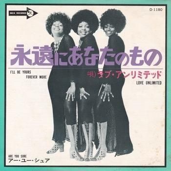 巨匠Barry Whiteがプロデュースを手がけたフィメール・トリオLove Unlimitedの1972年のデビュー・アルバム『From A Girl's Point Of View We Give To You... Love Unlimited』からのフリーソウルとしても人気の高い名曲中の名曲「I'll Be Yours Forever More(永遠にあなたのもの)」。更にB面には7インチは日本盤にのみ収録のMadlib「Sacrifice (Beat-a-holic Thoughts)」やLupe Fiasco「Glory」のサンプリング・ネタでもある「Are You Sure」のヴォーカル入りバージョンを収録したDiscogsにも未アーカイヴの希少国内プロモ盤7インチ。