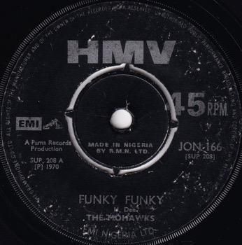 説明不要のブレイクビーツ・クラシック「The Champ」で知られる英ライブラリー〜イージー・リスニングの巨匠であるオルガニストAlan Hawkshawが結成した覆面スタジオ・グループMohawksの1970年にリリースされたシングル・オンリーによるレゲエ・ファンク・ナンバー「Funky Funky」の希少なアフリカ・ナイジェリア盤7インチ。