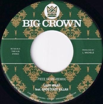 Terri Walkerとのソウル・デュオLadyのNicole WrayことLady Wrayの2022年の傑作2ndアルバム『Piece Of Me』からの特に人気の高いナンバー2曲をAサイドはGhostface Killahが、BサイドはPete Rockがコラボ・リミックスしたシングル・オンリーVerを収録したBig Crownからの即完限定7インチ。