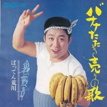 熊本県や福岡県、長崎県を中心に九州地方で長年に渡り活躍し"肥後にわかの巨匠"と評された舞台役者で演歌歌手、ばってん荒川による露天商、的屋が行う、独特の口上を述べながら客を引き寄せてバナナを露天で売る北九州門司港名物"バナナたたき売り"の歌。秋田音頭とも通づるなんちゃってラップ歌謡必殺チューン♪赤盤。