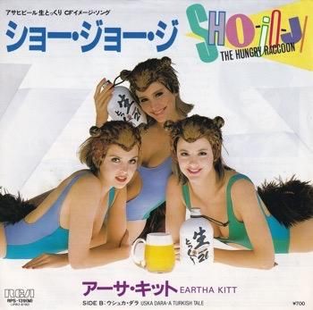 1960年代のテレビ・シリーズ『バットマン』のキャットウーマン役などで女優としても活躍したキャバレー・スターでありジャズ・シンガー、アーサー・キットの日本の童謡「証城寺の狸囃子」を日本語と英語をごちゃまぜにして歌った1955年のヒットナンバー「Sho-Jo-Ji」はゴロッパチやPetty Bookaもカヴァーした大人気チューン♪B面にはトルコの民謡をもとにした雪村いづみや江利チエミのカヴァーでもお馴染みクンビア風味のキラーチューン「Uska Dara-A Turkish Tale」をカップリングした1984年の7インチ。