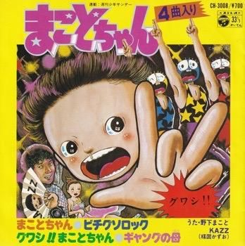 楳図かずおの代表作のひとつでもあるギャグ漫画の金字塔的作品『まことちゃん』の漫画イメージソングを4曲収録した1977年のシングル。。楳図かずお先生がザ・チャープスを従えて歌う小学生大喜びのお下劣ロックンロール「ビチグソロック」に、ラテン・ディスコ傑作チューン「グワシ!!まことちゃん」収録!