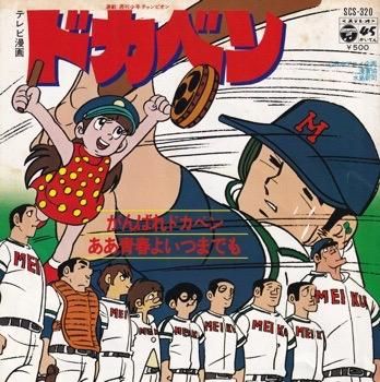 水島新司原作の野球アニメ 『ドカベン』のオープニング・テーマ「がんばれドカベン」に、エンディング・テーマ「ああ青春よいつまでも」を収録したサウンドトラック盤7インチ。