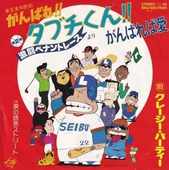 いしいひさいち原作の4コマ漫画『がんばれ!!タブチくん!!』の劇場版アニメ第2弾『がんばれ!! タブチくん!! 第2弾 激闘ペナントレース』の主題歌。大瀧詠一が作曲&一人多重録音コーラスをし、後にスターダストレビューでデビューする根本要(クレージー・パーティー名義)がボーカルを務めたお宝ナンバー「がんばれば愛」。とっても元気をもらえる応援ソングです♪