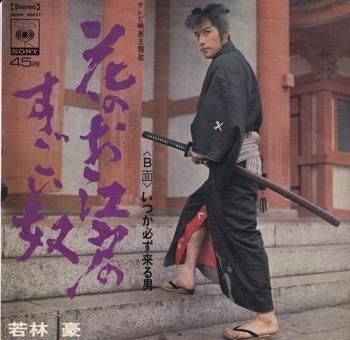 1969年に放送された若林豪主演によるテレビ時代劇『花のお江戸のすごい奴』の主題歌を収録した貴重なサウンドトラック盤7インチ。若林豪が歌うサーフ・ビート歌謡「花のお江戸のすごい奴」、本格ウエスタン・サウンドでおおくりする「いつか必ず来る男」ともにとてつもなくカッコイイのです♪