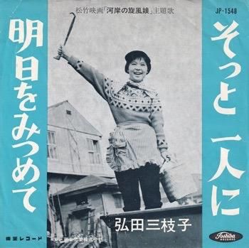 弘田三枝子の松竹入社第一回作品として1963年に公開された映画『河岸の旋風娘』の主題歌。クレイジー・キャッツの桜井千里が作曲、青島幸男が作詞を手掛けた「明日をみつめて」が涙が出るほど素敵な曲です♪