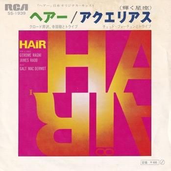 1967年にニューヨークで初演されたミュージカル『Hair』の1969年に日本上演された際のオリジナルキャストレコーディング・サウンドトラック盤で、Nasがサンプリングしたことで海外よりも絶大な人気を誇る、石川晶や小坂忠らも参加した1969年の名アルバム『Hair - The Original Japanese Cast Recording』からのミュージカル主題歌「Hair」、「Aquarius」の日本語詩カヴァーを収録したカルト盤レア7インチ。